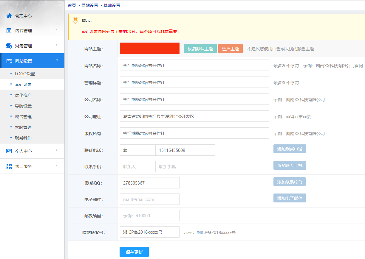 如何修改网站标题、联系电话及地址?