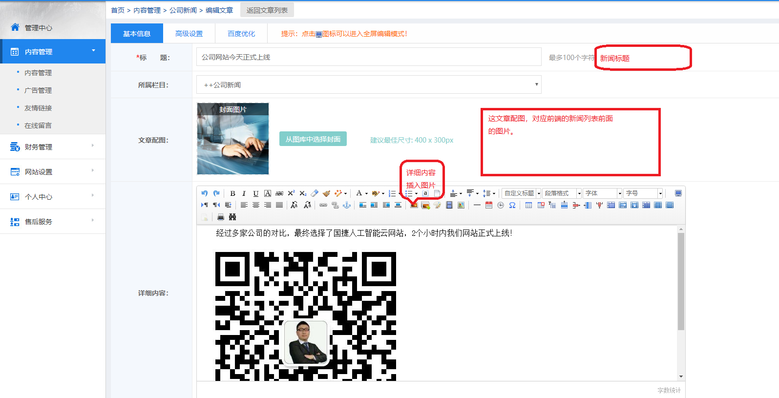 1、登入后台,进入内容管理-找到需要发布在哪个栏目(以公司新网为例)--左上角有发布2、